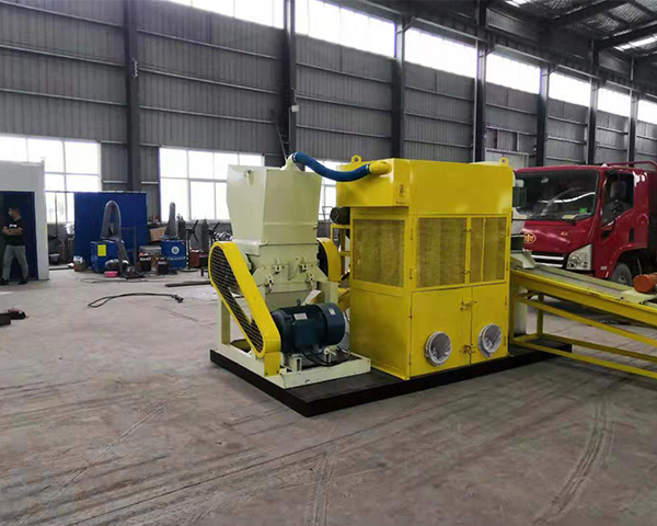 小型铜米机设计合理,结构合理,电气采用PLC程序控制,工作可靠。本机由双轴撕碎机、皮带输送机、二级破碎机、风机输送机、比重分选机,收尘器,电器控制等组成。废电线电缆通过撕碎破碎后,成为塑料破碎片与铜米,