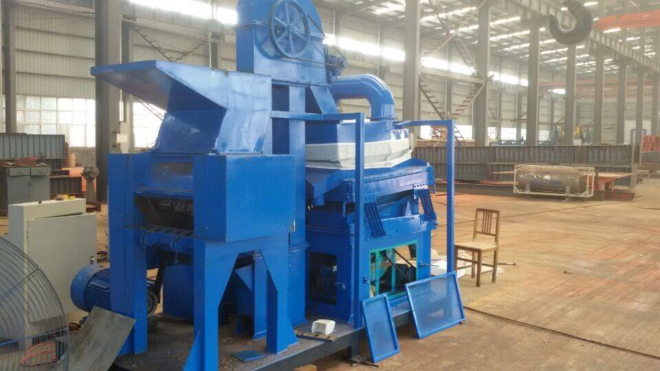 (5)没有分离处理干净的原料历经碾磨、机械振动、筛选,再次铜塑分离处理。这时细铜、细塑料制品进到筛床和分离处理台,再次鼓风分离处理。调节风机风量的大小需根据物料的不同来调节。这样要求破碎机喂入的原料尽量品种单一。进口铜米机的破碎能力、分离处理解决能力很强,但是对原料的品种要求较高。需吃精粮,五谷杂粮的分离处理效果较差。